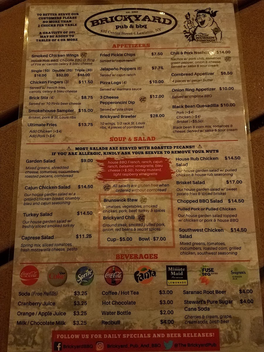 Welcome to Brickyard Pub & BBQ, a must-visit BBQ destination nestled in the heart of Lewiston, NY. This inviting pub is renowned for its delicious offerings, meticulously crafted with a southern flair.
